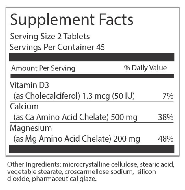 Calcium with Magnesium & D3 is a USA-made supplement that supports strong bones, healthy joints, and overall wellness. It combines highly absorbable calcium and magnesium with Vitamin D3 to enhance bone strength, muscle function, and calcium absorption. This formula also supports nerve health, energy production, sleep quality, and mental well-being. Gluten-free and made in a GMP-certified facility, it’s a complete solution for maintaining skeletal, muscular, and overall health. Take 2 tablets daily with food.