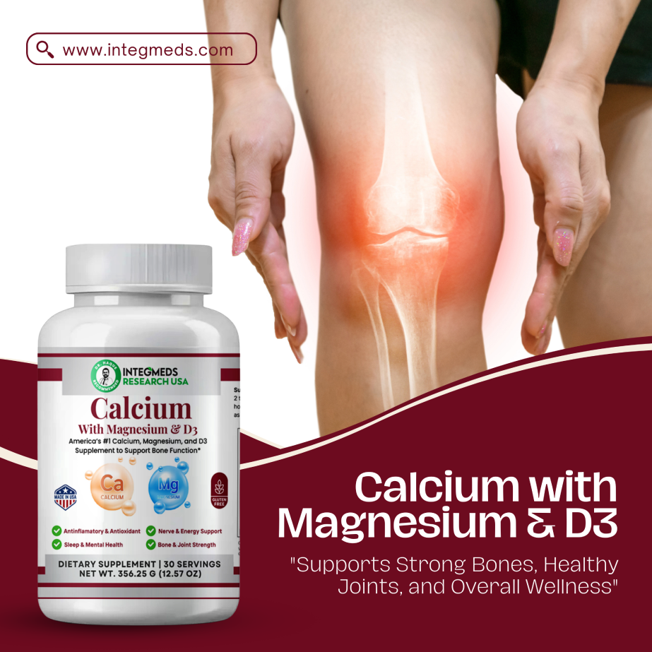 Calcium with Magnesium & D3 is a USA-made supplement that supports strong bones, healthy joints, and overall wellness. It combines highly absorbable calcium and magnesium with Vitamin D3 to enhance bone strength, muscle function, and calcium absorption. This formula also supports nerve health, energy production, sleep quality, and mental well-being. Gluten-free and made in a GMP-certified facility, it’s a complete solution for maintaining skeletal, muscular, and overall health. Take 2 tablets daily with food.